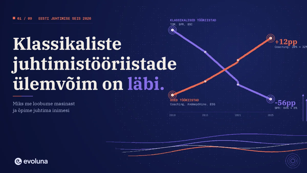 See on sarja "Eesti juhtimise seis 2026" esimene jätk. Järgmises artiklis vaatan, miks 97% Eesti juhtidest tunnetab majanduskeskkonna ebastabiilsust peamise mõjutegurina ning mida see teeb strateegilise planeerimisega.